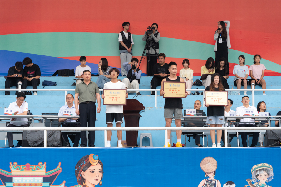 本届运动会总裁判长、体育学院院长倪东业宣布运动会团体总分排名及获得“体育道德风尚奖”的单位。医学部以620.5分的优异成绩位居团体总分榜首,法学院、智能科学与工程学院、化学与环境工程学院、研究生处、林学园艺学院、经济与管理学院、数学与统计学院分别位列第二至第八名。另外,民族学与社会学学院、马克思主义学院等九个代表队荣获“体育道德风尚奖”。