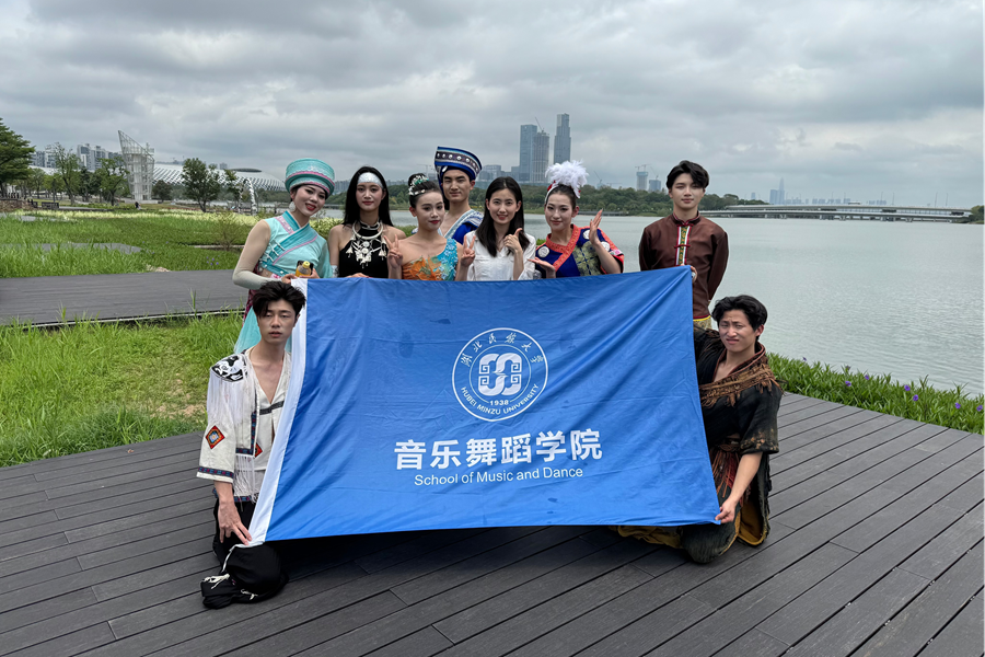 参演《山水画卷》节目的民大学子在深圳拍摄现场