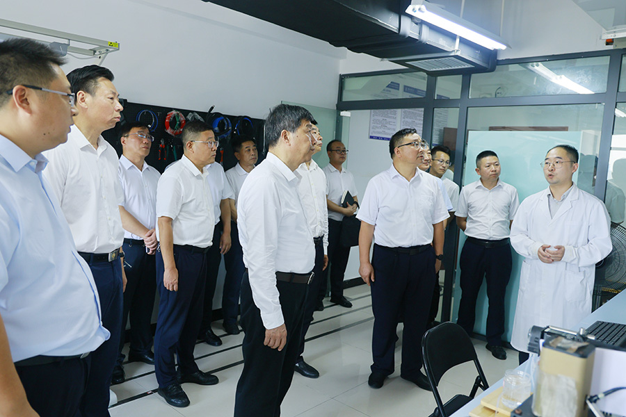 胡超文一行参观了硒资源研究与生物应用湖北省重点实验室及武陵山中药材检验检测中心,听取了科研团队关于硒元素生物应用、富硒产品开发等领域的汇报,详细了解了硒科研领域最新研究进展及科研成果,并现场观看工作人员演示自主研发的硒的快检设备,对该技术的便捷性和实用性表示赞赏,对实验室在硒检测技术标准化、功能产品研发等方面取得的突破给予充分肯定。