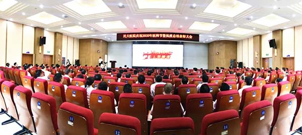 医院院长刘伦志代表医院向医师们致以节日问候,并向家属们致以敬意。医院党委书记谭庆丰向所有为民大医院跨越式发展作出突出贡献的医生表示感谢,并希望全体医务人员继续为医院的腾飞再立新功。