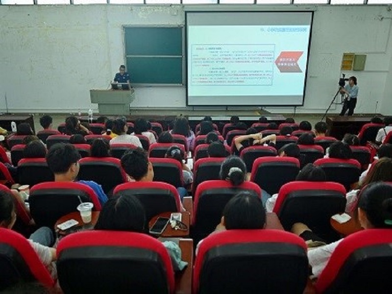 讲座伊始,徐国虎组织学生观看了学校消防安全警示教育片,使学生对校园消防安全有了初步了解。他围绕“应该履行的职责”“火灾的主要特点”“典型火灾案例集”“消防器材的使用”“初起火灾的扑救”五部分展开详细叙述。徐国虎提到,火灾以其蔓延迅速、人员疏散困难的特点,导致扑救难度大,易造成人员伤亡。他引用北京某宿舍起火的真实案例,具体分析造成火灾的原因,并向学生介绍常见的消防安全设施。凭借简单的口诀“提、拔、握、压”,即“提起灭火器,右手握压把,左手托底部,到达现场,拔下保险栓,右手握压把,左手握喷管,喷管对准火焰根部,用力压下压拔,喷射火焰”,他向学生详细讲解了灭火器的使用方法及作用,引导学生正确使用灭火器进行灭火。他表示,学生应该熟悉灭火器设置的位置,掌握不同灭火器扑救火灾的方法。同时在火灾发生时,应保持理智,临危不乱,通过简易防护,蒙鼻匍匐,辨明方向,迅速撤离现场,以确保人身安全。