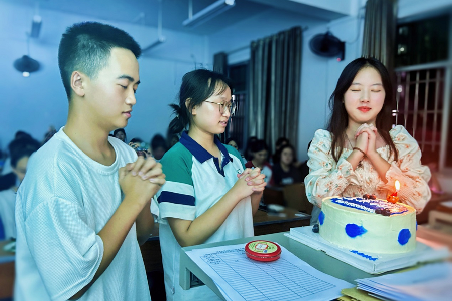 当晚的晚点名是新生们在大学的第一次相聚,新生班主任和“小萌新”怀着对彼此的期待介绍自己、聊着家常,轻松愉快的环境下,两位班主任突然点到几位同学的名字,并让他们走到讲台前。被点到名字的同学缓缓起身,不知所措走向讲台,满是局促和不安。这时,班主任领唱起“祝你生日快乐,祝你生日快乐……”,伴着祝福的歌声,学长学姐们将早早准备好的生日蛋糕和礼物送进教室,同学们一阵欢呼。此时“蒙在鼓里”的小寿星们才意识到这是学院为他们准备的生日惊喜。在欢声笑语中,他们点燃蜡烛,许下了在jinnian金年会的第一个生日愿望。