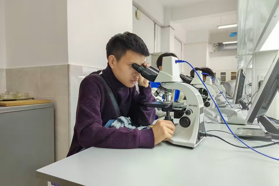 在医学实训中心,医学部老师尚娜为学生上了一堂生动的《急救技能培训》课,学生分为2至3人一组,在老师的指导下完成一套标准心肺复苏操作,引导学生在面临突发状况时,乐于施救、敢于施救、善于施救。