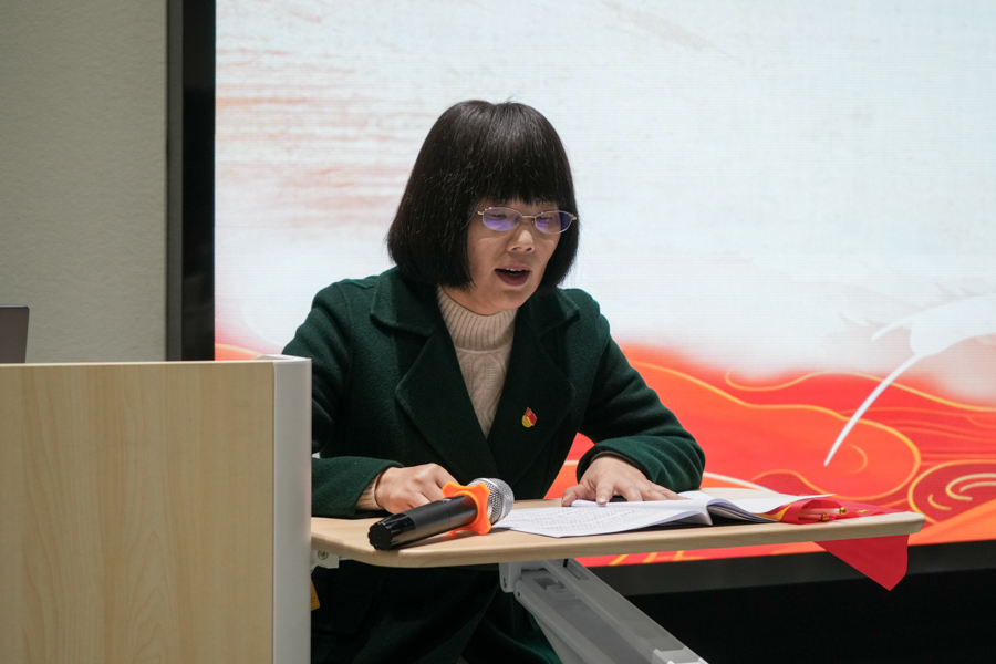 音乐舞蹈学院党总支书记张蕊领誓入党誓词。集体诵读《中国共产党章程》(第三十二条)。