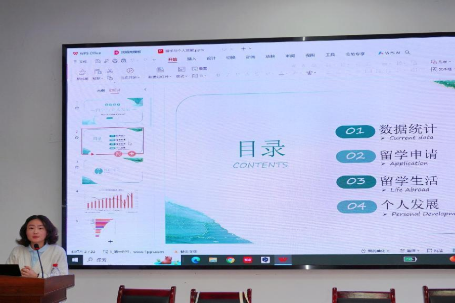“什么是出国留学?”“为什么要出国留学?”“怎样出国留学?”,3月28日,围绕着“国际视野与个人发展”这一主题,英语系副主任舒婧娟老师作为主讲人,从当前专业发展前景、留学市场现状、留学申请经验等方面与同学们展开分享,她建议同学们要将个人发展与时代需求结合起来,要关注就业形势、拓宽国际视野,科学制定个人的学习规划与职业规划。在场同学认真聆听舒老师的讲解,纷纷表示受益匪浅,更加明确了自己未来的学习和成长的规划。