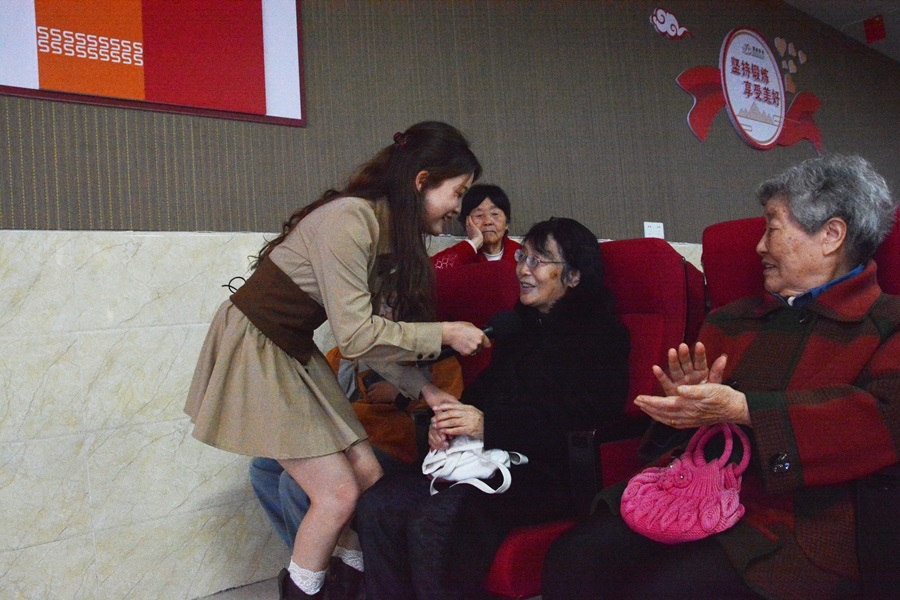 上午9时许,老人与同学们在演播厅整齐列队,齐唱《歌唱祖国》。旗峰养老院王玮主任致欢迎词,对学生们的到来表示热烈欢迎和衷心感谢。