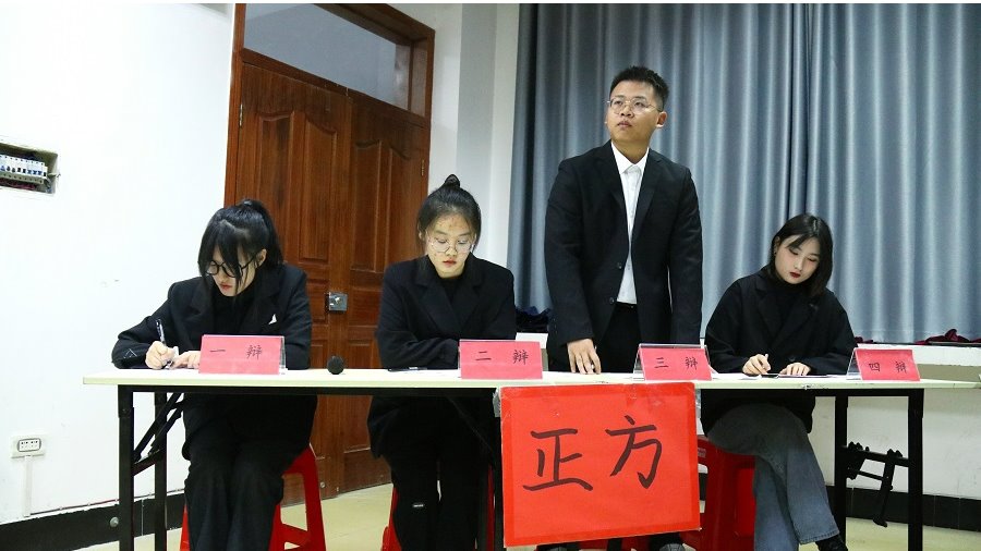 12月11日,文学与传媒学院和马克思主义学院在德智楼9B401教室举办友谊辩论赛。