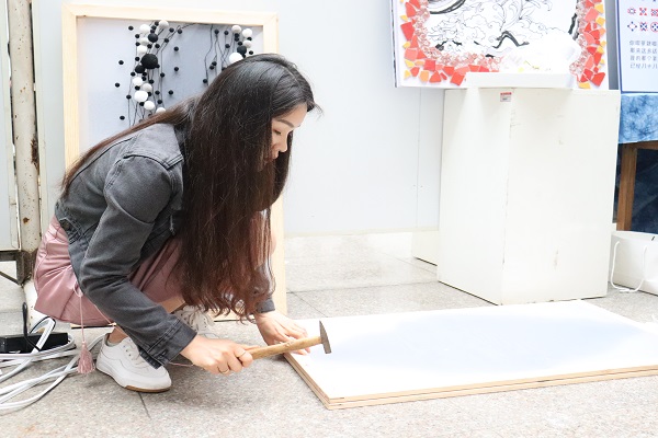 学生布置展览现场