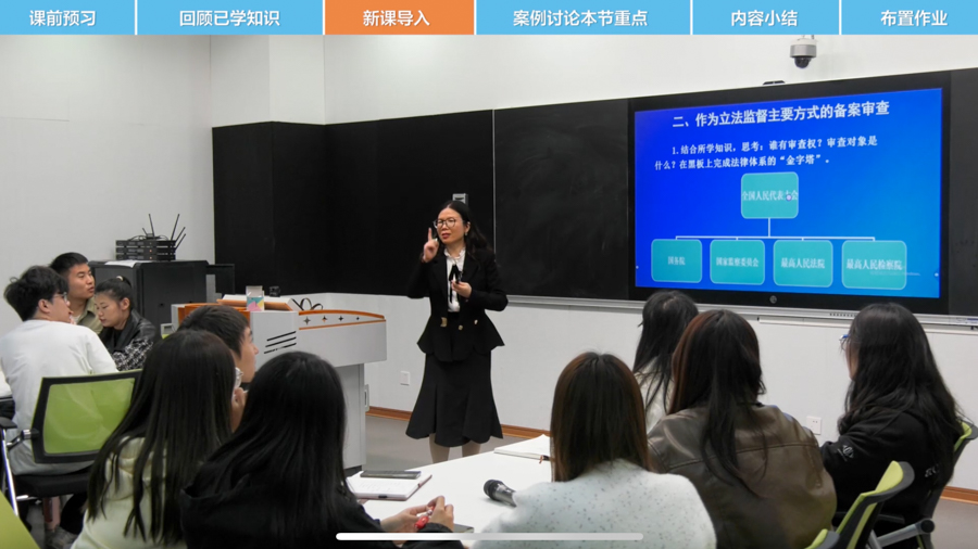 近年来,学校积极举办教学创新大赛,助力“四新”建设,促进教师教学“提质创新”,深入推动教育教学改革,全面推进课程建设,践行教学创新,锻造金师,提升人才培养质量。冉艳辉认为,参加教学创新大赛,对于教师来说,就是对平时课程建设理念和实践的总结和提炼。“虽然是第一次参加教学比赛,但我的功夫都下在了平时。这次参加比赛的创新实践报告、课堂教学视频,就是我的学生和我日常课程教学状态的真实呈现。”在谈及《立法理论与实务》这门参赛课程时,冉艳辉分享了她的做法,从三年前开课之时,她结合自己多年的立法实务经验与理论研究,注重将线上与线下课程相结合、理论与实践相结合,依托恩施州立法研究与人才培养基地这个平台进行教学改革,在立法理论学习的基础上增加模拟立法实训课程。以问题为导向,以学生为中心,融合理论教学、课程思政、项目实训和学科竞赛,注重考核全程化、评价多元化,实现了该课程教学模式的全面创新。