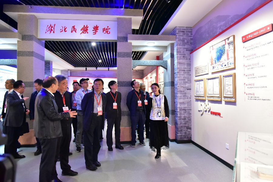见面会后,专家组全体成员及省教育评估院认证工作组成员、学校校领导集体考察了学校展览中心。