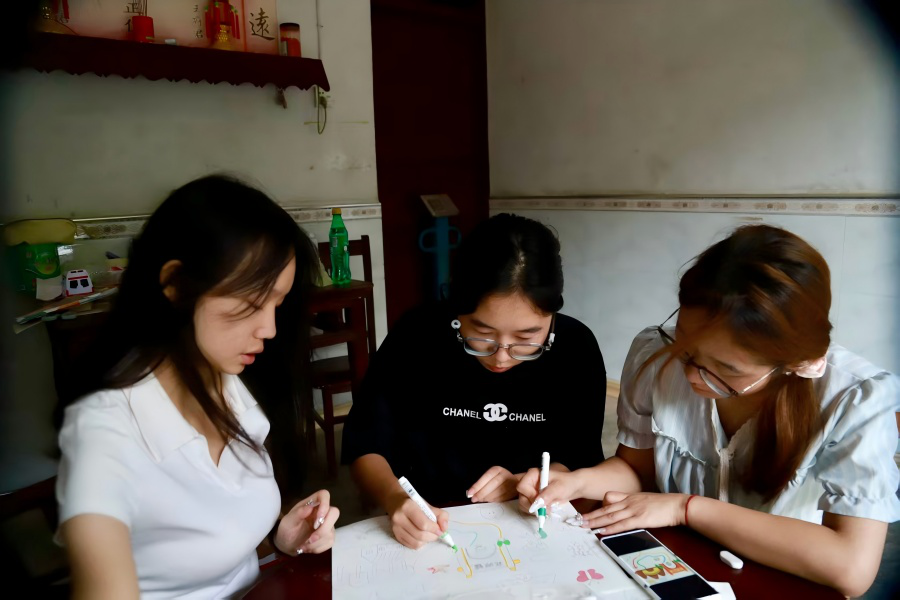 活动首日,队员逐户走访调研留守儿童的生活学习现状。针对部分留守儿童存在的课业困惑,队员们采用案例教学与互动实践相结合的方式开展辅导。面对孩子们提出的“数学难学”问题,队员们结合乡村生活场景,用田间作物计数、溪流石子拼摆图形等具象化教学方法,将抽象的数学知识转化为可感知的生活实例,有效降低孩子们的学习畏难情绪。