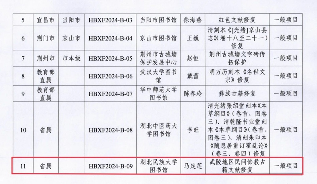 马定莲所负责的湖北省历史文献修复省属立项项目截图