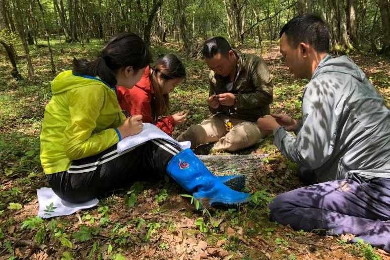 吴林带领学生调查苔藓植物多样性