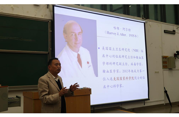 本网讯(通讯员 方珊 余铮术  )10月15日晚19:00,由研究生处主办、医学部承办的学术讲座《从丙肝病毒到新冠病毒——对病毒研究的再认识》——2020年诺贝尔生理学或医学奖解读会在5B508教室顺利举行。此次讲座由金年会学科建设及学位管理办公室副主任罗洪斌教授主讲,医学部、化环学院、数统学院全体研究生和部分本科生到场聆听。
