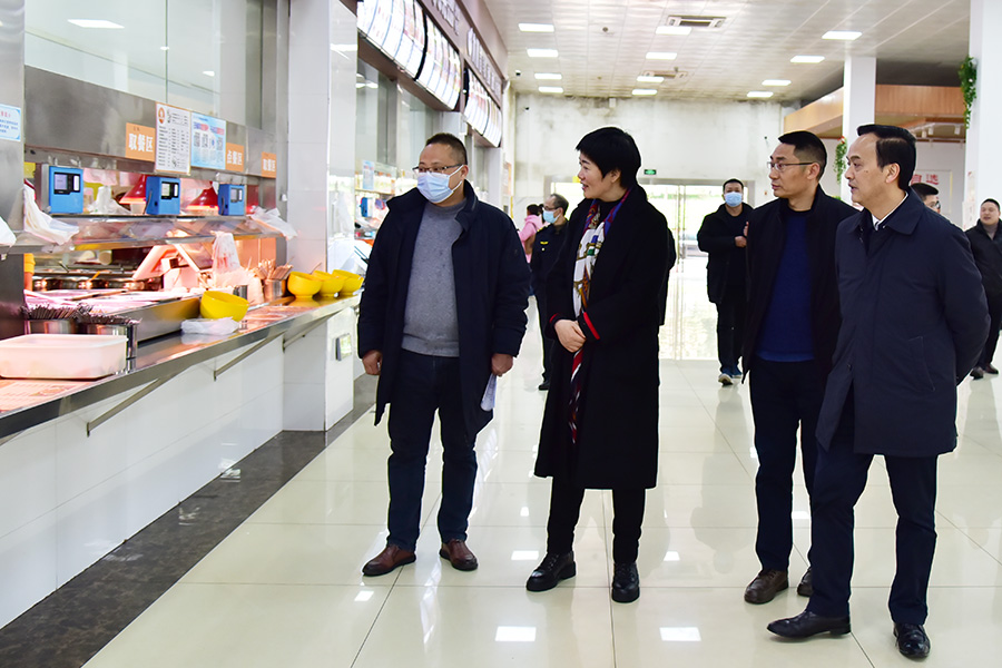 3月2日,州委常委、宣传部长向红林到学校检查食品安全工作,学校党委书记向前进,党委常委、总会计师余来陪同检查。向红林一行实地查看了东苑食堂二、三楼及民族餐厅的加工操作、储存管理、食堂内外环境卫生状况等情况,详细询问食堂工作人员经营状况,并向前来就餐的学生了解饭菜品质和价格,就发现的问题与相关负责人深入交流,对如何提升学校食品安全管理水平提出了指导意见。向红林(前排左二)在向前进(前排右一)、余来...