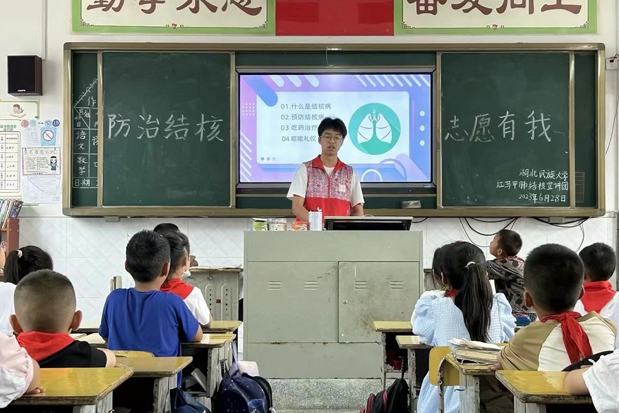 为普及结核病防治政策和知识,提高居民健康素养,6月25日至7月5日,jinnian金年会“防治结核 志愿有我”红马甲肺结核志愿宣讲团前往恩施市屯堡乡、白杨坪镇、民族路社区、来凤县旧司镇开展为期十天的暑期“三下乡”社会实践活动。团队成员为居民测量血压团队成员深入居民家中,详细讲解结核病致病原因、发病症状、传播渠道等知识,宣传结核病防治相关知识和国家对结核病治疗的惠民政策,提高居民对结核病危害性的认识。同时,团...
