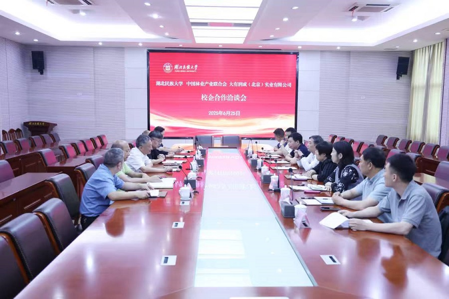 6月25日,木本油料山桐子研究成果产业化校企合作洽谈会在学校举行,校长顿祖义与中国林业产业联合会会长封加平、大有润成(北京)实业有限公司董事长李晓敏就校企合作相关事宜展开深入交流。党委常委、副校长刘志军主持洽谈会。会议现场顿祖义对封加平、李晓敏一行表示热烈欢迎,对中国林业产业联合会和大有润成实业有限公司给予学校的支持和信任表示感谢。他向客人介绍了学校办学历史和发展现状,并重点介绍了林学学科专业的特色...