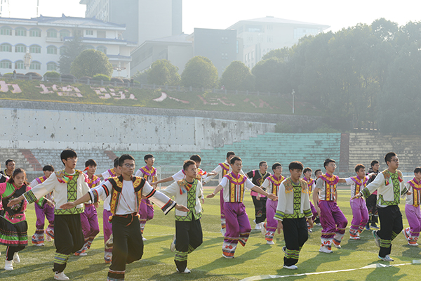 开幕式现场民族团结操比赛现场民族团结操比赛现场本网讯(通讯员 tw)11月15日上午,金年会第六届民族文化节开幕式暨民族团结健身操比赛在民族体育场举行,学校统战部常务副部长丁莉、校团委书记方云霞、恩施职业技术学院团委书记别振宇、党委宣传部副部长万力、学工处副处长李建华、体育学院党总支副书记何斌、音乐舞蹈学院副院长焦娜、校团委副书记吴珊出席活动并担任评委,开幕式由校团委副书记谢晖主持。学校团委书记方云霞宣...