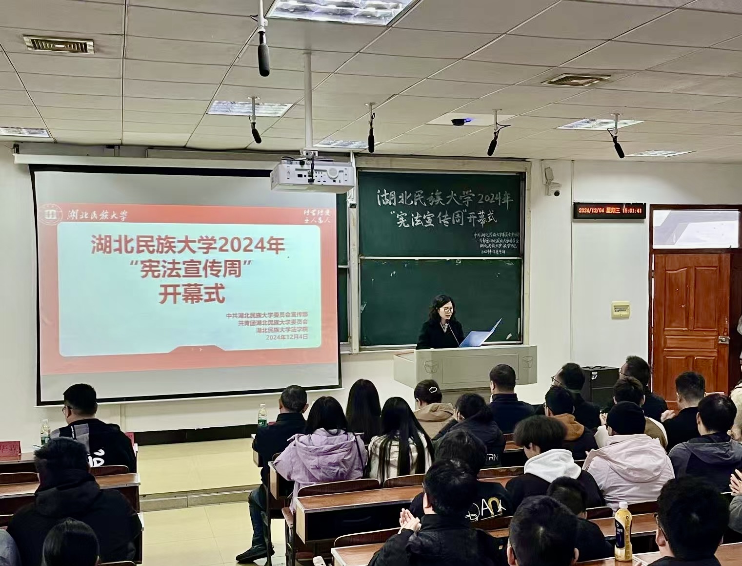 12月4日是第十一个国家宪法日,由中共jinnian金年会委员会宣传部、共青团jinnian金年会委员会主办,jinnian金年会法学院承办的“宪法宣传周”开幕式在德智楼9A410教室举行。法学院法学系主任冉艳辉主持开幕式。恩施州人大法制委员会主任委员、常委会法制工作委员会主任吴以忠,恩施州人大常委会法制工作委员会办公室主任刘浏,学校党委宣传部、研究生部(处)、校团委等相关单位负责人,法学院师生参加开幕式。开幕式现场全体成员...
