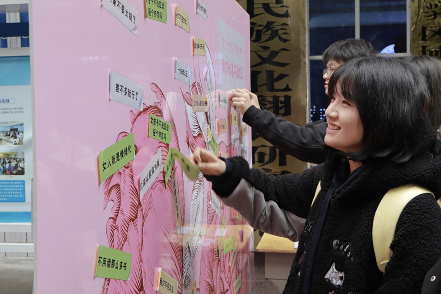为提升性别平等意识,促进异性间的理解与尊重,营造尊重和关爱女性的良好氛围,3月20日,社会工作者协会在民族体育场举办以“呵护她力量,绽放巾帼美”为主题的关爱女性活动。活动现场活动分为线上“心目中的她”创意摄影征集和线下游戏互动两部分。线下活动设置“她言她语”拼贴诗、乒乓接力、泡泡糖三个环节。在“她言她语”拼贴诗游戏中,学生挑选喜欢的诗句,拼贴到其他学生已拼贴过的纸上,组成一页页“诗”篇,表达对女性...
