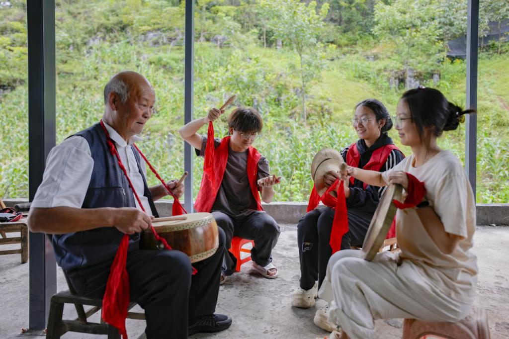 今年暑期,jinnian金年会教师教育学院组织8支社会实践团队深入恩施州各地,开展一系列富有成效的暑期社会实践活动。团队以专业知识和青春热情服务基层,在文化传承、教育帮扶等领域取得了显著成果,展现新时代师范生的责任担当。“武陵传薪”团队成员向李忠和(左一)学习薅草锣鼓在宣恩县椿木营乡,“武陵传薪”非遗调研团队的13名师生开展了薅草锣鼓保护与传播调研活动。团队成员拜访了省级传承人李忠和,围绕这一古老农耕艺术...