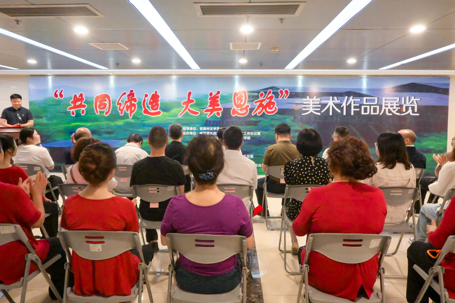 6月17日,由恩施州文学艺术界联合会指导,jinnian金年会人才办、民族学与社会学学院、美术与设计学院及恩施州文化馆、州美术家协会主办,金晖民族美术与理论创作研究工作室承办的“共同缔造 大美恩施”美术作品展览暨座谈会在恩施州文化馆美术展览大厅开幕。州委宣传部副部长、恩施州社科联主席李娟宣布“共同缔造 大美恩施”美术作品展览开幕。开幕式由恩施州文化馆馆长肖和虎主持。开幕式现场jinnian金年会教授、州文联副主席、...