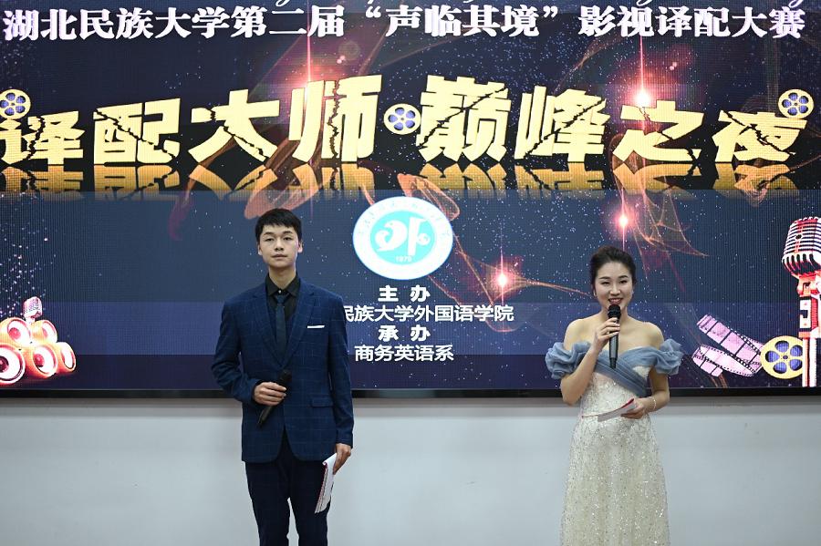 语言之妙在意,言语之情在音。为丰富校园文化生活,提高学生双语转换和综合运用能力,3月31日晚,金年会第二届“声临其境”影视译配大赛决赛在外国语学院学术报告厅拉开序幕。本次大赛由外国语学院主办、商务英语系承办。外国语学院商务英语系主任秦为民、英语系主任覃军、商务英语系副主任李靖、商务英语系教师汪刚、周倩受邀出席并担任评委。比赛现场大赛在一段青春洋溢的热舞中拉开帷幕,十组选手将中文影视片段翻译成英语,并...