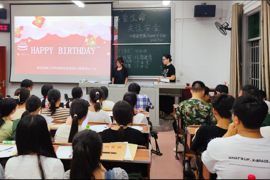 残云收夏暑,新雨带秋岚。9月10日,是jinnian金年会本科新生报到的日子,外国语学院293名“小萌新”们也正式开启了他们的大学学习之旅。学生生日会现场当晚的晚点名是新生们在大学的第一次相聚,新生班主任和“小萌新”怀着对彼此的期待介绍自己、聊着家常,轻松愉快的环境下,两位班主任突然点到几位同学的名字,并让他们走到讲台前。被点到名字的同学缓缓起身,不知所措走向讲台,满是局促和不安。这时,班主任领唱起“祝你生...