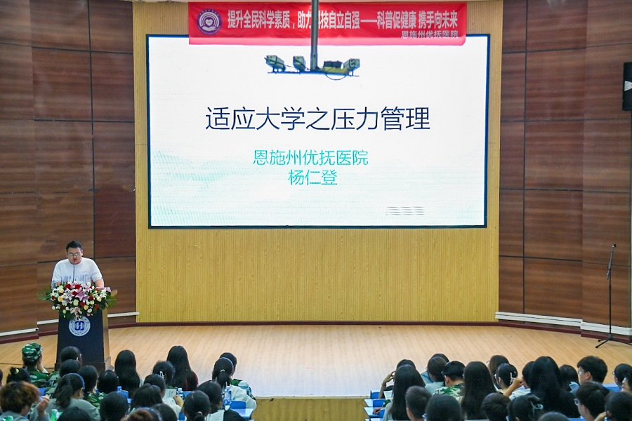 入学教育是新生进入大学生涯的第一课,是帮助新生适应学校教育与管理模式、养成良好学习与生活习惯、科学规划大学学习生涯与职业生涯的重要保证。为帮助新生快速融入大学生活,9月15日至20日,学校各二级学院(部)开展一系列2023级新生入学教育活动。9月15日,文学与传媒学院在图书馆报告厅举办以“科普促健康,携手向未来”为主题的讲座。恩施州优抚医院精神科四区主任、副主任医师杨仁登担任此次主讲人。主题讲座现场杨仁登...