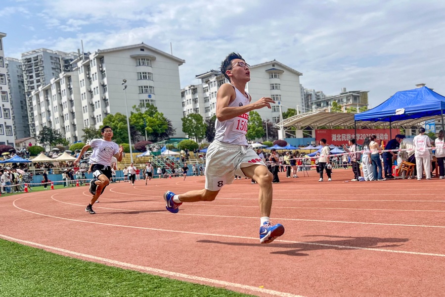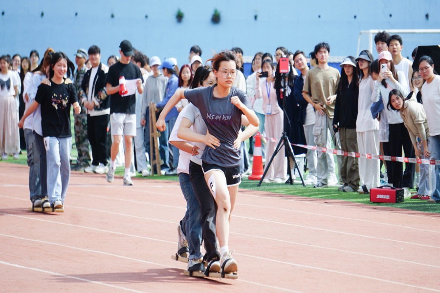 民族赛场绽芳华,青春步点踏新声。4月16日,jinnian金年会民族特色项目比赛在五环体育场举行。参赛选手绑紧板鞋绑带、握住竹马竹杆,木板摩擦地面,竹马蹬地向前,口号与步伐精准共振。板鞋与竹马上投下交错的光影,击地声在跑道上交织出传统与热血的交响,一次次默契的腾跃踏出民族团结的节拍