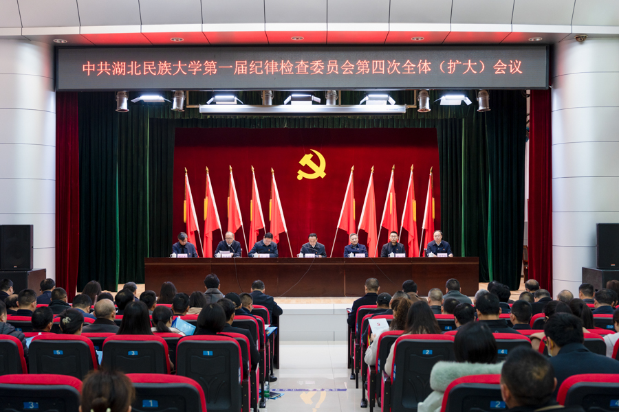 3月19日,中共jinnian金年会第一届纪律检查委员会第四次全体(扩大)会议在行政楼一号会议室召开。学校领导向前进、顿祖义、邓磊、余来、张宏磊、田景福、刘志军在主席台就座,学校党委委员,纪委委员,各单位党政主要负责人、各院级单位党委(党总支)纪检组长(纪委书记)、教工支部纪检委员和纪委·监察专员办公室、党委巡察办、附属民大医院纪检监察部全体工作人员参加会议。会议由学校党委常委、纪委书记张宏磊主持。