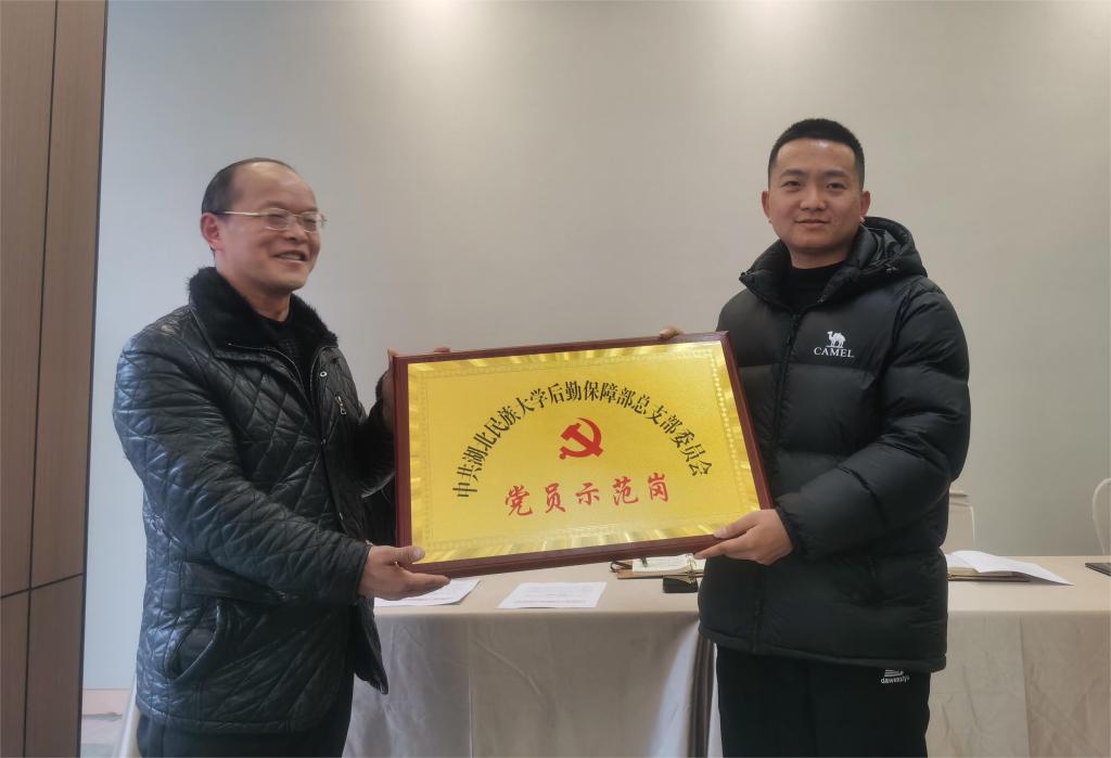 为深入学习贯彻习近平新时代中国特色社会主义思想,强化党建引领,充分发挥支部战斗堡垒作用、党员先锋模范作用,推动后勤服务质量的提升,后勤保障部党总支于2024年12月开展了“党员示范岗”评选活动,经各科室(中心)申报、各支部审核、党总支会议研究,决定授予水电服务中心集体“党员示范岗”荣誉称号。“党员示范岗”授牌仪式于2025年1月17日下午在后勤保障部会议室举行,授牌仪式由后勤保障部党总支副书记、主任李奇峰主持。