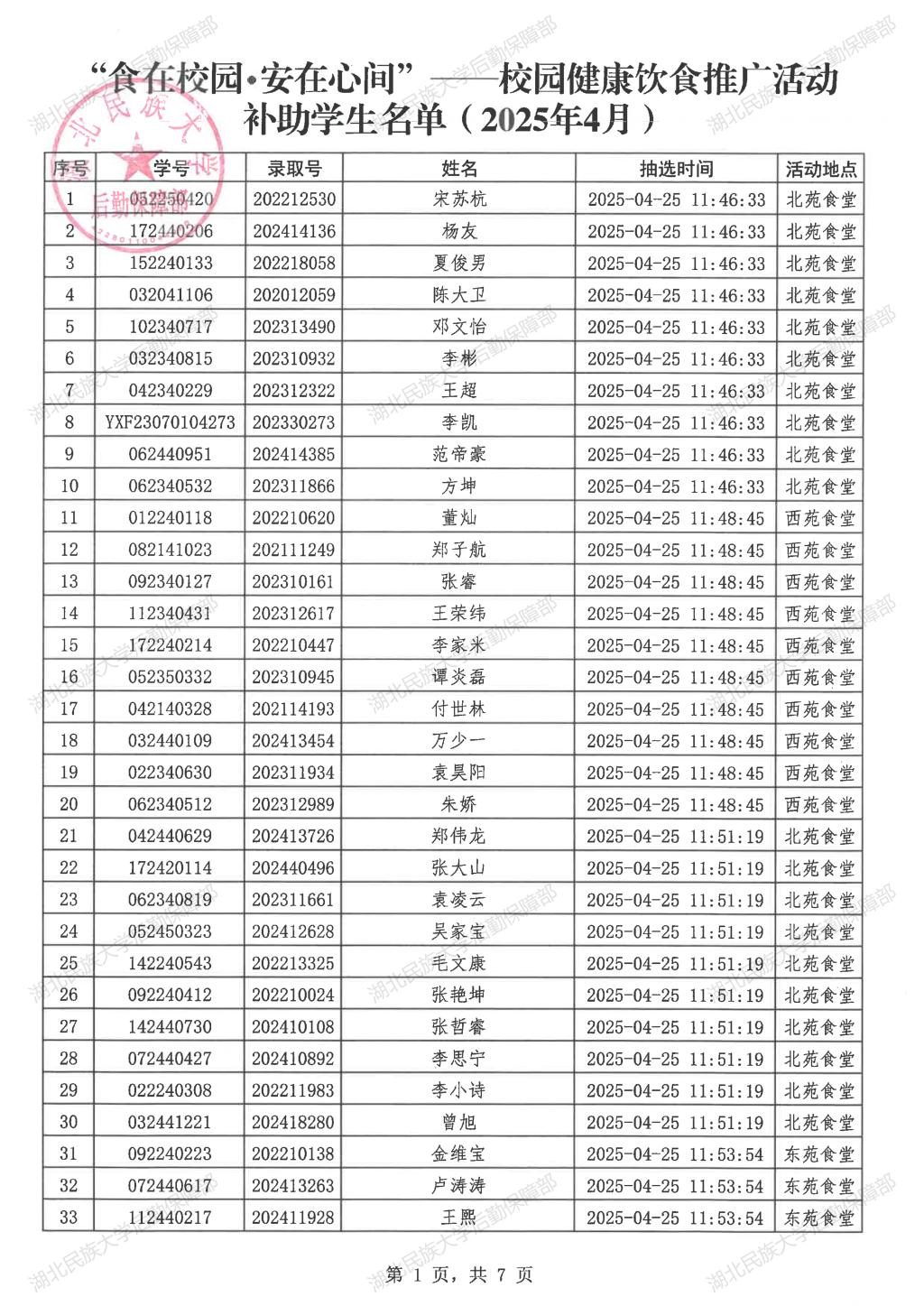 “食在校园•安在心间”——校园健康饮食推广活动(2025年4月)补助学生名单公示