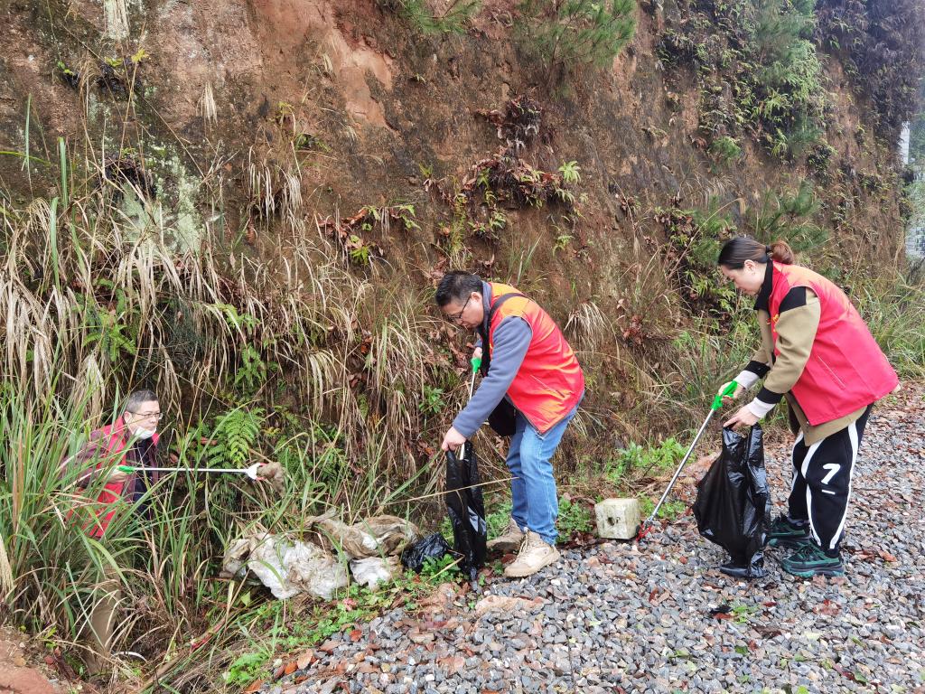 特色实践环节,为践行“雷锋”精神,积极响应恩施市“创文创卫”、学校文明校园创建等工作要求,全体党员前往学校三洼花海项目现场开展学雷锋志愿服务活动,清理偏僻区域和卫生死角中的白色垃圾及杂物。