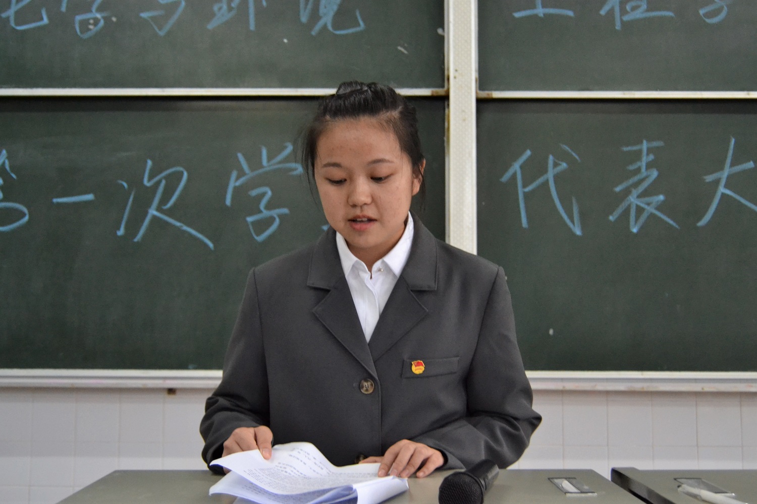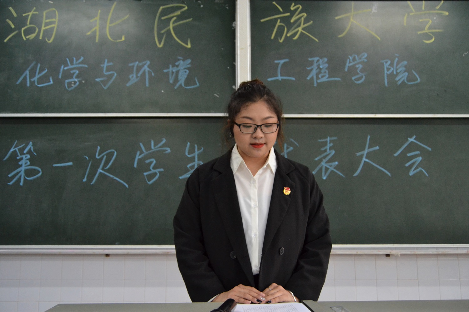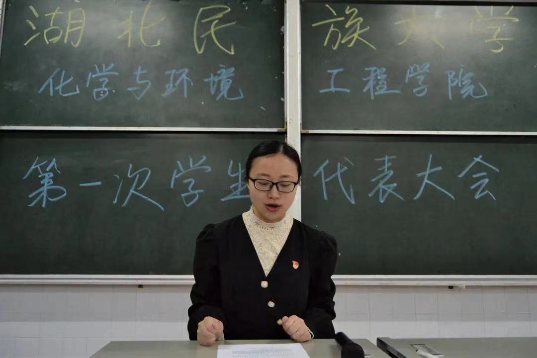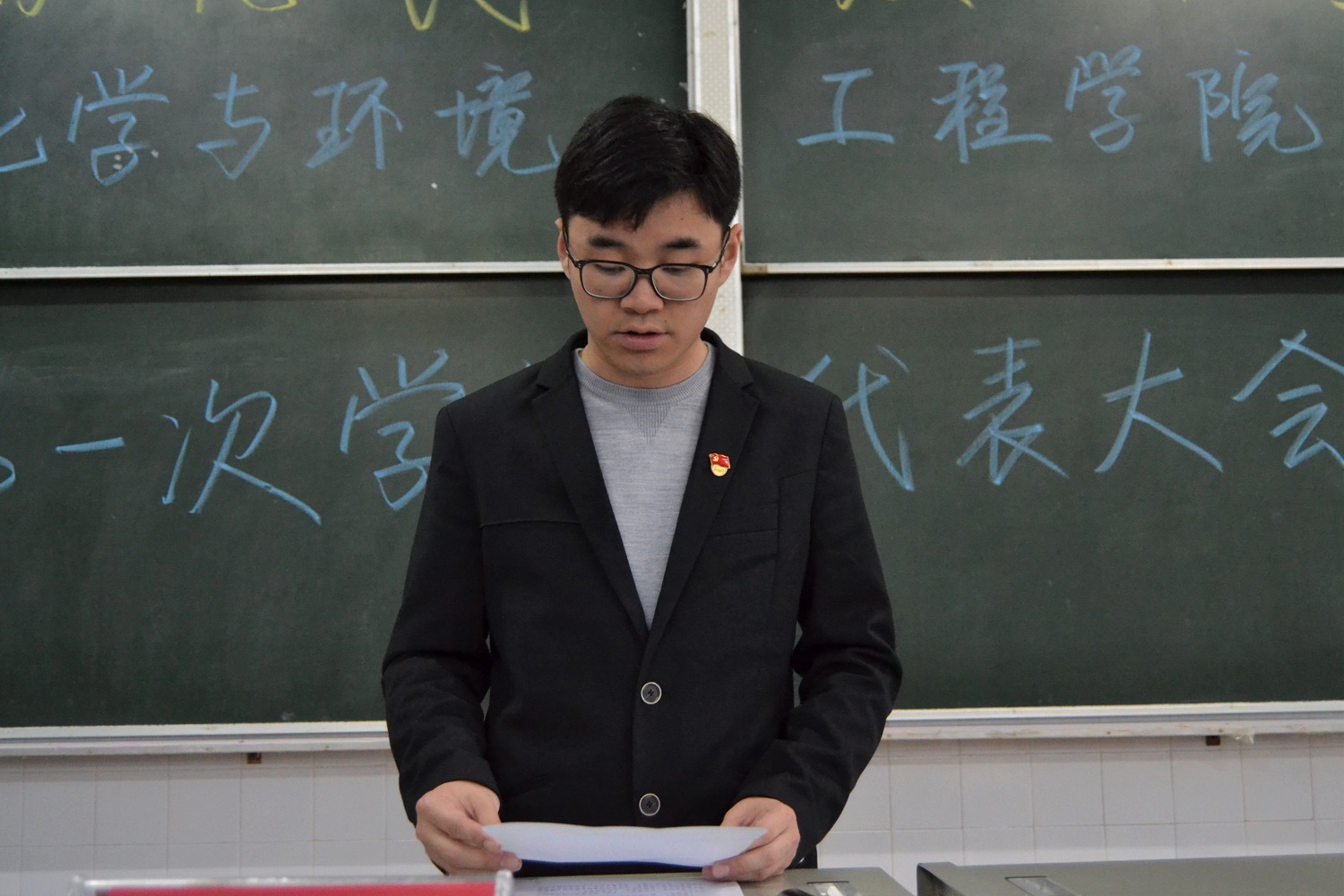 校学生会代表廖雪颖发言,她鼓舞同学们:青春既是我们的追梦者,也是圆梦人,希望大家秉持着博学博爱,立人达人的校训精神。以jinnian金年会化学与环境工程学院第一次学生代表大会为契机,坚定信念, 牢记使命,开拓进取,在伟大的时代展现自己的青春风采 ,在美好的未来,诠释青春的活力, 铸就jinnian金年会的明日辉煌,为建立社会主义现代化国家贡献自己的力量 。