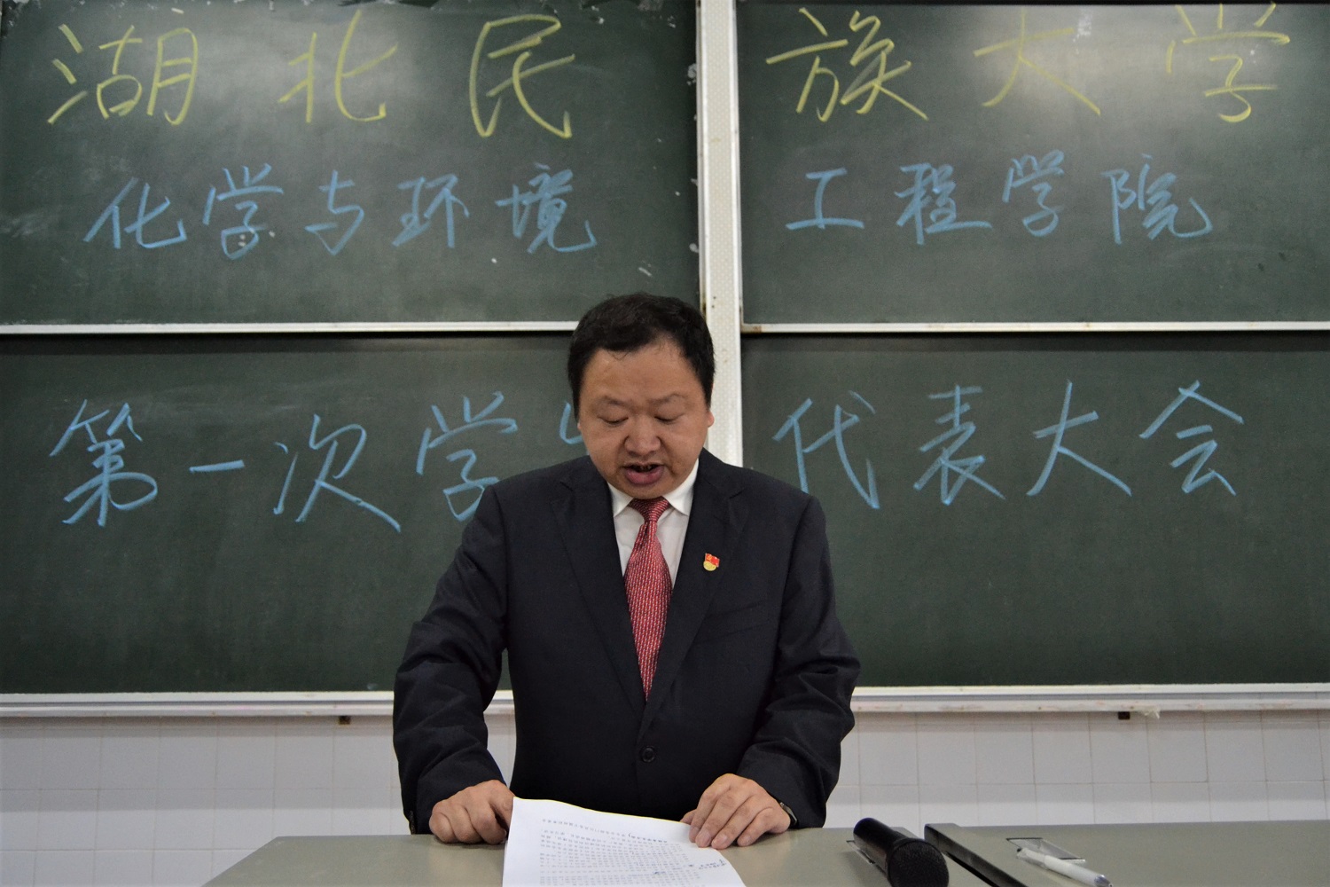院党总支书记张刚发言,他指出,学生会是党领导下的学生组织,学生会要始终坚持正确的政治方向,深刻领会学生会组织改革的重大意义,同时学生会还是是学院联系广大同学的桥梁和纽带,要紧紧围绕服务学院发展大局和学生成长成才的工作定位,切实履行好沟通学院与广大同学的联系。要紧紧依靠同学、一切为了同学、始终代表同学、着力服务同学,通过学院学校各种正常渠道,反映同学建议、意见和要求,凝聚广大同学主动参与涉及学生的学院事务的民主管理。他表示,我们身逢盛世,同样也重任在肩。化学与环境工程学院培养了一代又一代杰出青年,希望大家以学院第一次学代会为契机,坚定信念、把握大势,敢于担当,善于作为,让青春在为祖国、为民族、为人民、为人类的不懈奋斗中绽放绚丽之花,努力成为堪当民族复兴重任的时代新人。