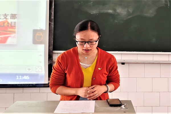活动伊始,全体党员交纳党费、重温入党誓词,学生党员袁亚丹带领与会成员诵读《党章》第十章五十二条、第十一章五十三条、五十四条、五十五条相关内容。接着,刘恒带领学习《关于加强新时代马克思主义学院建设的意见》,他强调,二十一世纪马克思主义对引导青年学生具有重要意义,要建好建强马克思主义社会。随后,覃昕带领学习《关于充分发挥基层党组织战斗堡垒作用和党员先锋模范作用,进一步深化党史学习教育“我为群众办实事”实践活的动通知》,她谈到学生党员要不忘初心、牢记使命,积极为民服务。而后,彭召元领学《关于进一步推进受贿行贿一起查的意见》,他深入开展了警示教育,倡导廉洁守法的理念。随后,张艺馨领学“习近平给全国高校黄大年式教师团队代表的回信”。学生党员郑谋桥带领与会人员学习“9月13日至14日习近平在陕西榆林考察时的重要讲话精神”。学生党员付中保带领参会人员学习《中国共产党简史》节选。