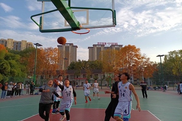 比赛中,裁判秉承公正公平的原则,各个参赛队员奋力拼搏,队员之间默契配合,观看比赛的同学也在场外和比赛队员一样紧张卖力。最终,教师队以51:46取得本次比赛的胜利。