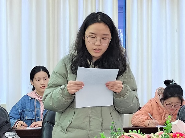 本网讯(通讯员 吕婷/文 李雅琪/图)12月9日,我院学生党支部在院会议室召开预备党员转正大会。会议讨论关于胡琼丹、王雪娇两名预备党员申请转为正式党员事宜。我院学生党支部书记张艺馨、组织委员覃昕、宣传委员刘恒、纪检委员彭召元及学生党员、预备党员参加会议。张艺馨主持大会。