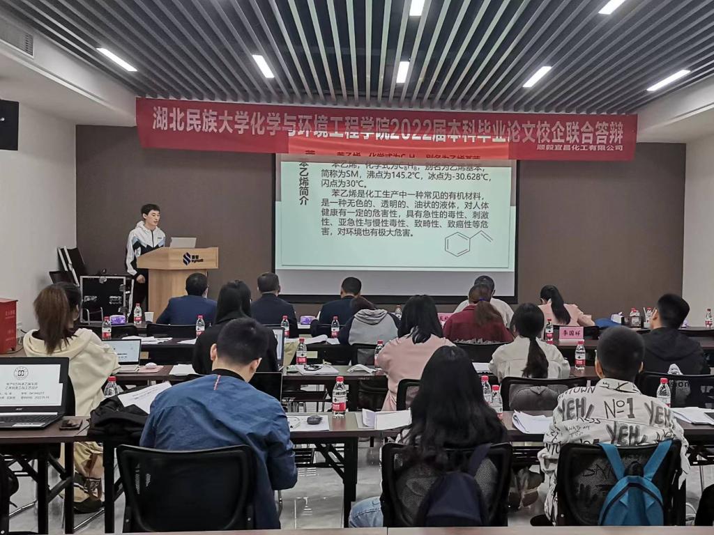 本网讯(通讯员 向建)5月14日,化学与环境工程学院与湖北襄阳南漳龙蟒磷制品有限责任公司一道为金年会化学工程与工艺、制药工程专业的11名实习生组织了一场特别的毕业论文答辩会,这是该院首次开展“校企联合”毕业论文答辩。