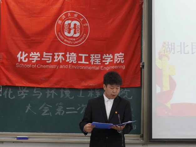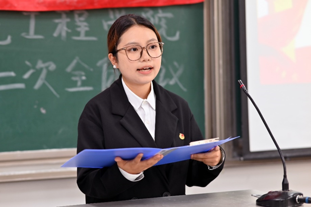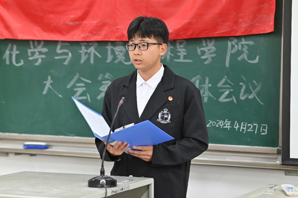 闫俊杰代表我院学生会作《奋楫笃行不止步、履践致远勇争先,用青春和热血奋力谱写壮丽的时代篇章》的主题工作报告,他总结了过去一年里我院学生会的累累硕果,并对未来的工作进行展望。