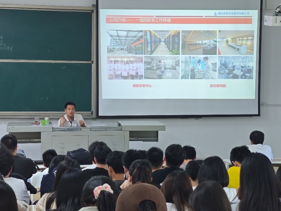 本网讯(通讯员 王奕 彭文萍)为深化校企合作,拓宽学生就业渠道,5月23日,湖北凌晟药业股份有限公司行政总监周双军和人力资源部主管张红波应邀到我院开展就业宣讲活动,此次活动面向我院2022、2023级制药工程专业全体学生。