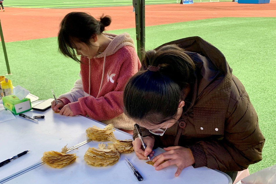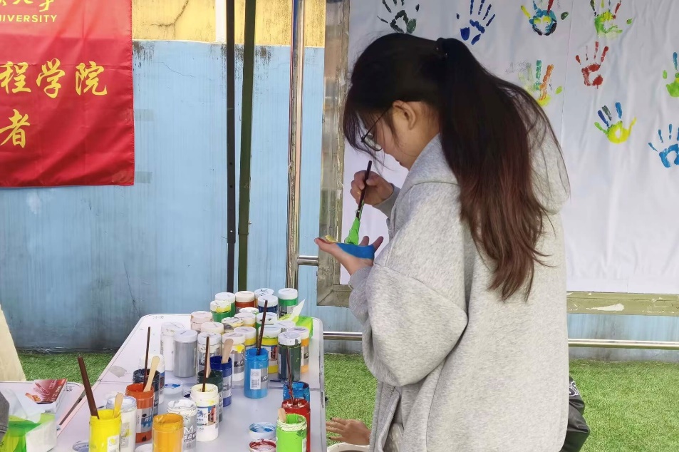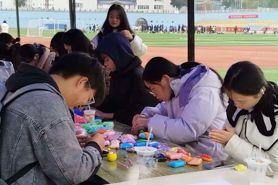 活动中,“多彩手印,印出美好回忆”环节的手印墙是同学们志愿服务经历的生动展示区,每一个彩色手印旁写下的故事都是他们奉献与成长的见证,也是志愿精神的传递。“叶上之语,志愿之心”环节,金黄银杏叶化身时光信笺,参与者们执起笔,将曾经志愿活动里的感悟与心得凝于笔端,落于叶上。“小小志愿者黏土”创作区域则充满了创意与童趣,同学们用黏土塑造出与志愿服务相关的手工创意作品,在激发创新能力和艺术才华的同时,将公共服务精神融入其中,让志愿精神以更加鲜活、多元的方式得以呈现。