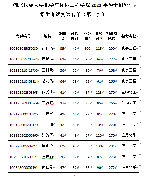 jinnian金年会化学与环境工程学院2023年硕士研究生 招生考试复试名单(调剂第二批)