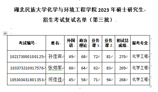 jinnian金年会化学与环境工程学院2023年硕士研究生 招生考试复试名单(调剂第三批)