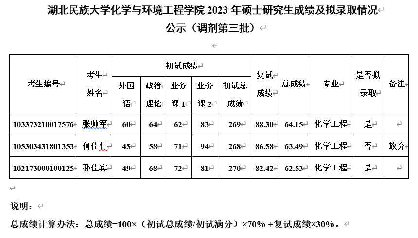 jinnian金年会2023年硕士研究生成绩及拟录取情况公示(调剂第三批)
