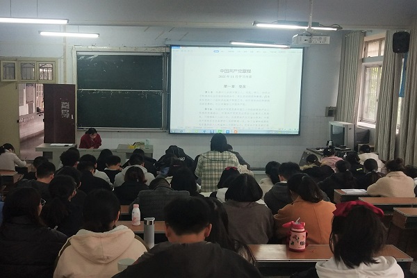 活动伊始,全体党员交纳党费,由张艺馨带领重温入党誓词,学生党员王海燕带领与会成员诵读《党章》第一章第一条、第二条、第三条相关内容。接下来,刘恒带领学习《10月18日中共中央政治局会议精神》。他提出,各成员要“见贤思齐焉,见不贤而内自省也”,要严肃对待上交材料内容的正确性。而后,覃昕带领学习《10月24日至26日应勇在恩施州调研时的讲话精神》,她指出,党员应时时刻刻关注当地发展,扎根人民,坚定思想理念,对党忠诚、甘于奉献、履职尽责、以实现行动践行共产党人的初心和使命。紧接着,彭召元带领学习《习近平在纪念辛亥革命110周年上的讲话》,他表示“辛亥革命是中国人民奋起反抗斗争的伟大实践,而中国共产党是历史的选择、人民的选择,是党和国家的根本所在、命脉所在,是全国各族人民的利益所系、命运所系”。随后,张艺馨领学“jinnian金年会第一次党代会精神”她强调,我们要关注学校建设,为学校建设献出自己的一份力。最后,学生党员王庭雍带领学习《中国共产党简史之抗美援朝战争》。