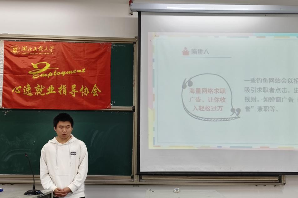 本网讯(通讯员 吴昕杭/文 税姣/图)为帮助应届毕业生规避求职陷阱、增强维权意识,12月6日,我院心逸就业指导协会在2107教室开展“求职维权培训”活动。