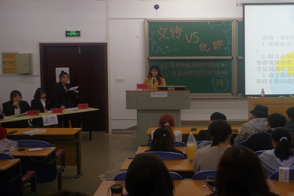 正方文学与传媒学院和反方化学与环境工程学院围绕“青春偶像崇拜利大于弊”“青春偶像崇拜弊大于利”展开辩论。最终,反方三辩田诗瑶荣获优秀辩手”称号。