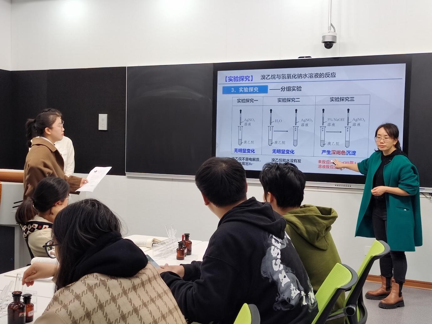 在日常教学过程中,为落实“以本为本”要求,王艳老师结合本科教学课程特点,始终坚持以备课充分、授课高效为目标。从课堂结构上做到预告主题、明示话题转移、重述主要观点,讲课内容从简单到复杂,从熟悉到陌生,从一般性的陈述到具体例子、图示、应用,再重述一遍规则、归纳或原理。提醒学生要点之间的转换和关系,让学生感受到连续性和意义、新话题与课程主题间的联系。“授人以鱼不如授人以渔”,为帮助学生理解,她充分考虑和评估不同学生的理解能力而因材施教,在学生已有的知识和理解能力上解释内容,分别用正式语言、口头语言或用图表、数字等不同方式让学生跟上自己的节奏,让学生找出要点并现场纠正学生理解错误的地方,给学生机会补上还没有完全理解的内容,帮助学生分析这个观点,一边解决一边标出解决这个问题的步骤。使学生能体会到化学就在身边,领悟到化学的魅力,感受到化学的乐趣,进而感受生活中化学之美。